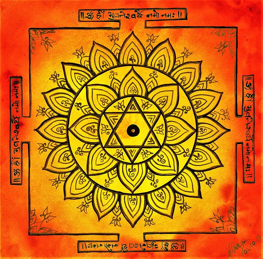 Quando misuriamo, apprezziamo, confrontiamo o classifichiamo cose o oggetti diversi, non facciamo altro che cadere nella trappola dei nomi (nama) e delle forme (rupa) illusorie che definiscono questi oggetti, dimenticando quasi completamente la realtà dello spazio unitario fondamentale, che è in realtà la matrice primordiale da cui sono emersi. Ogni forma che si manifesta nel regno oggettivo è in realtà un conglomerato di onde energetiche che esistono in virtù delle risonanze specifiche di quella forma nello spazio infinito. Pertanto, uno dei modi importanti per trascendere facilmente l’illusione a cui ci sottoponiamo quasi in ogni momento è quello di “imparare” a vedere intorno a noi, ovunque, lo spazio sacro della Divina Madre Bhuvaneshwari, uno spazio che è in realtà la sua gigantesca e ineffabile Coscienza che ci abbraccia tutti in un abbraccio gentile e compassionevole.