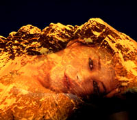 “O Dea, aiutami a meditare sul tuo ombelico, il luogo in cui puoi abbandonarti con sicurezza; il tuo corpo è favorito dalla tua stessa giovinezza in fiore piena di travolgente bellezza. I tuoi seni, come fiori di loto, sono unti con pasta di sandalo e richiamano l’abbraccio di Śiva. I tuoi seni mi ricordano le protuberanze frontali dell’elefante che emerge dall’acqua schiumando”. (Si usa paragonare i seni alle due protuberanze sulla fronte dell’elefante).