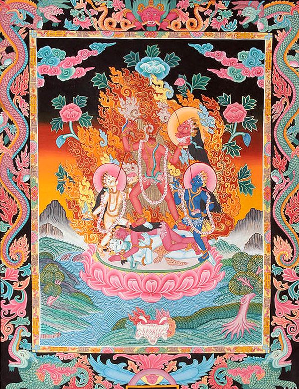 Questa rappresentazione iconografica della Grande Forza Macrocosmica CHINNAMASTA della tradizione induista è praticamente identica a quella della Grande Dea VAJRA DAKINI della tradizione buddista tantrica tibetana.